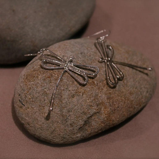 Large Dragonfly Silver Earrings