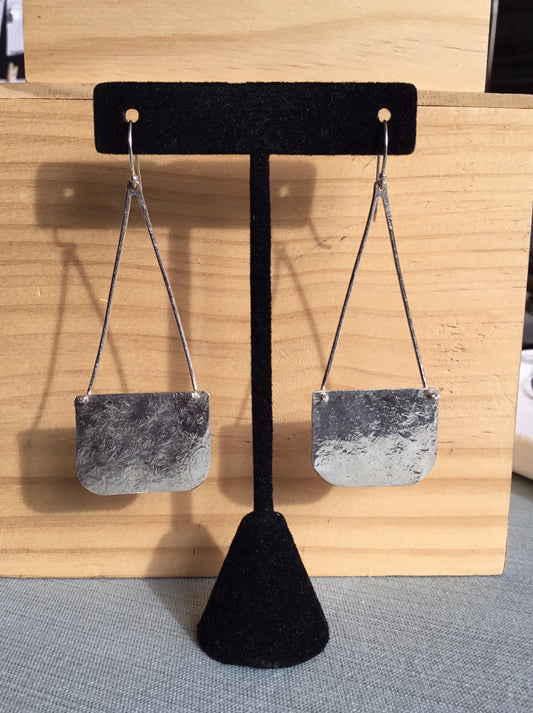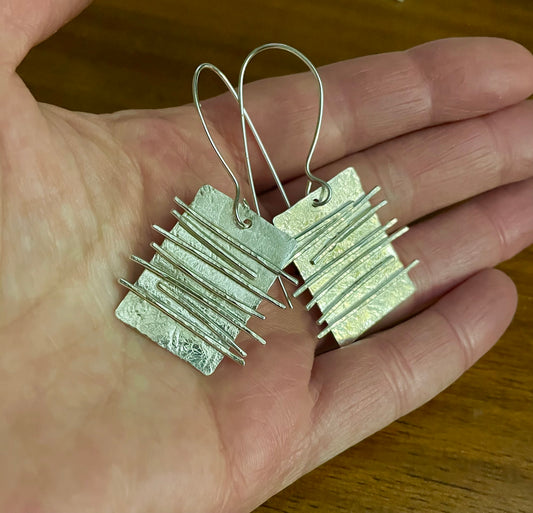 Rectangular with High Relief Lines Rustic Earrings in Silver