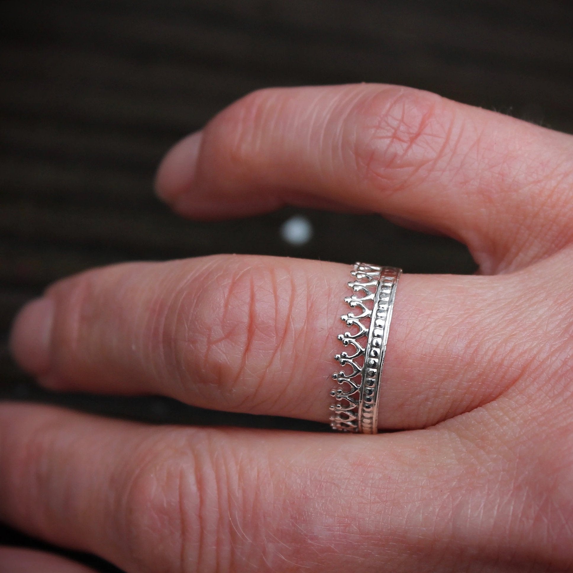 Crown Ring with Dot Border