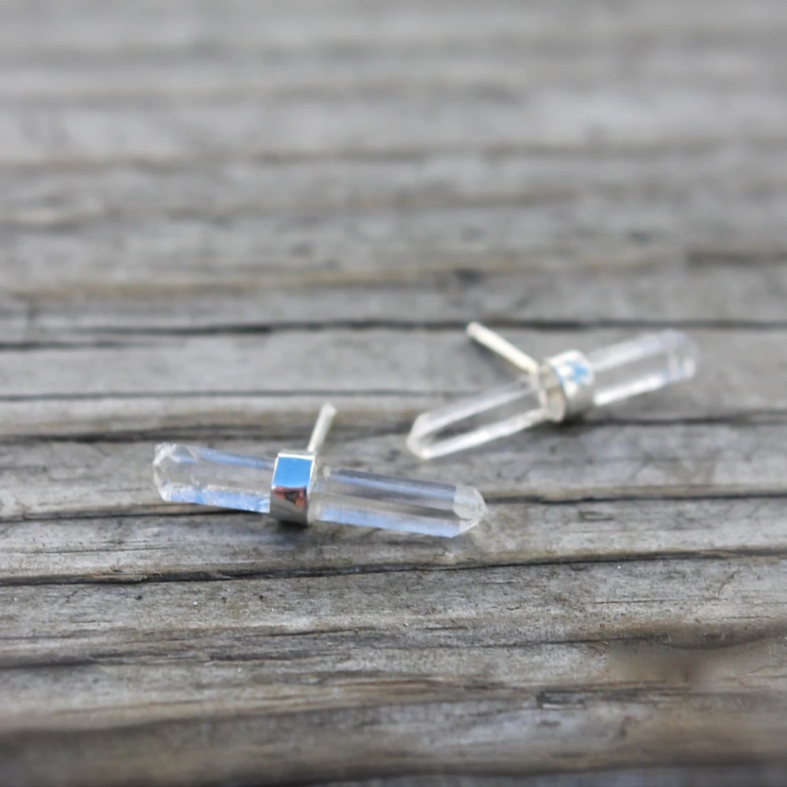 I handcraft these small quartz crystal points earrings with a sterling silver bezel wrap. Each crystal is left in it's raw natural state. The beauty and simplicity of these earrings goes along way! Each pair is unique and made just for you.