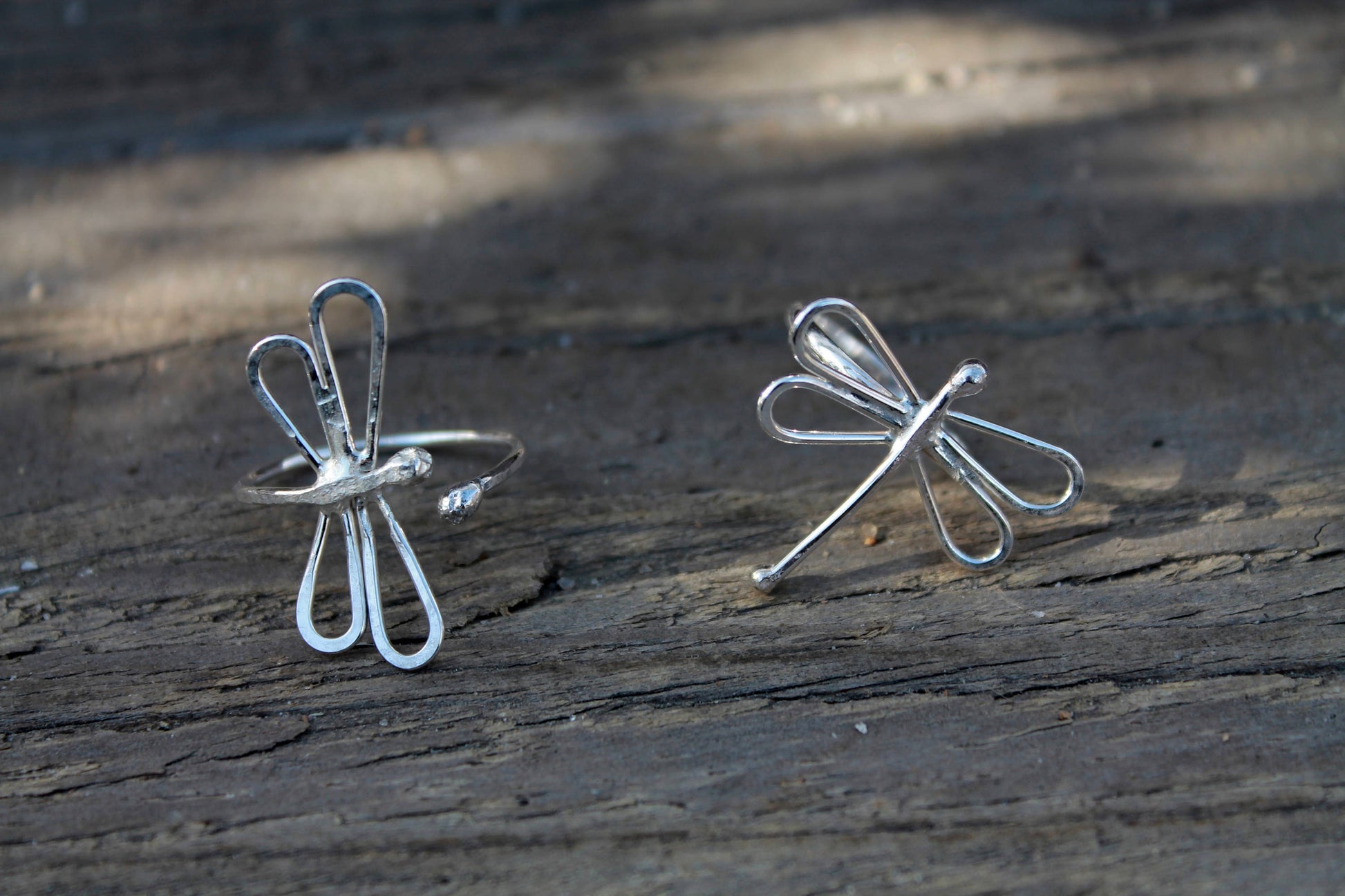 I handcraft these dragonfly Rings from solid sterling silver. All of the dragonflies that I make are completely handmade one at a time, giving each one a special look.