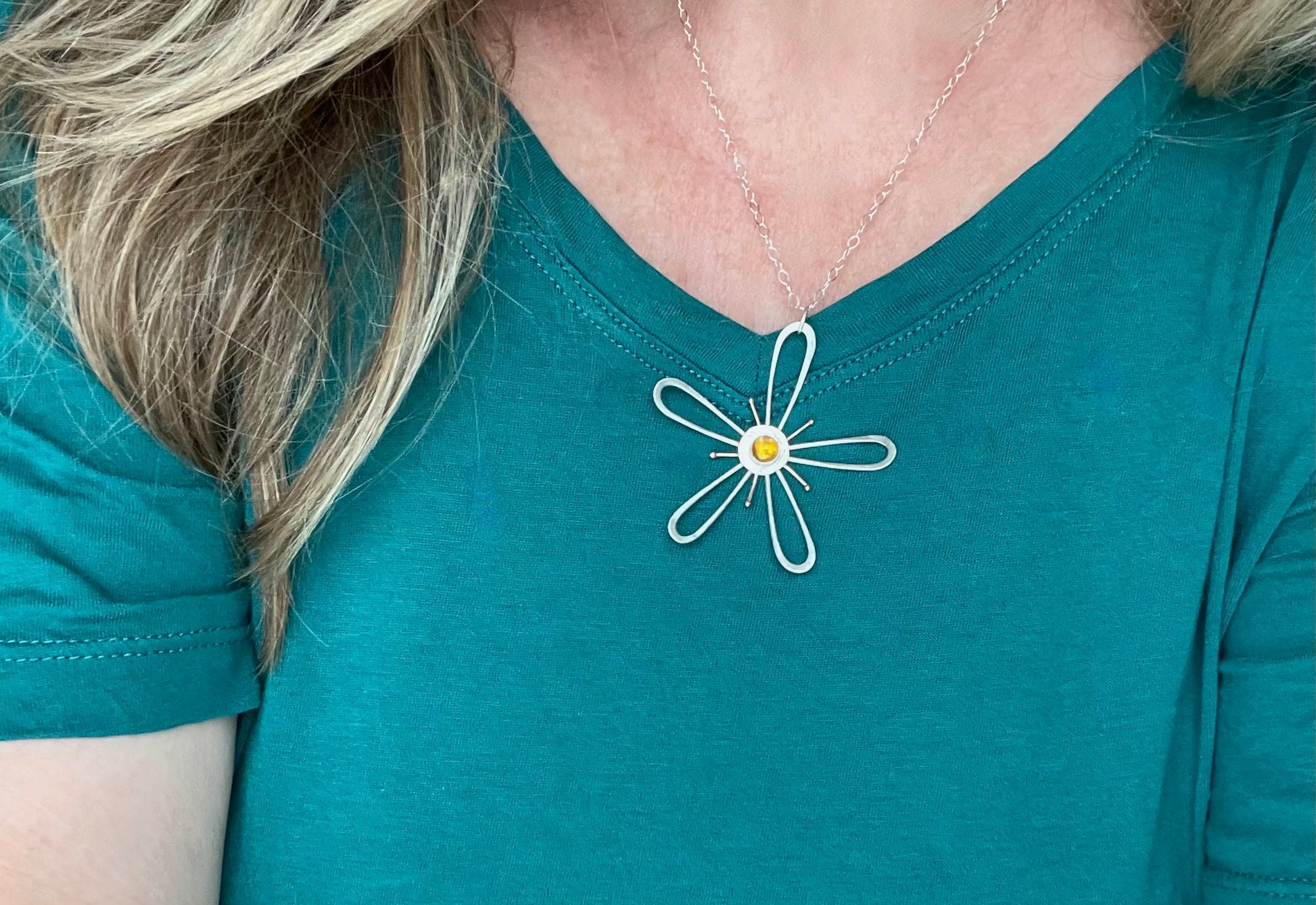 Add some fun to any outfit with this lovely mixed metal Flower Necklace...