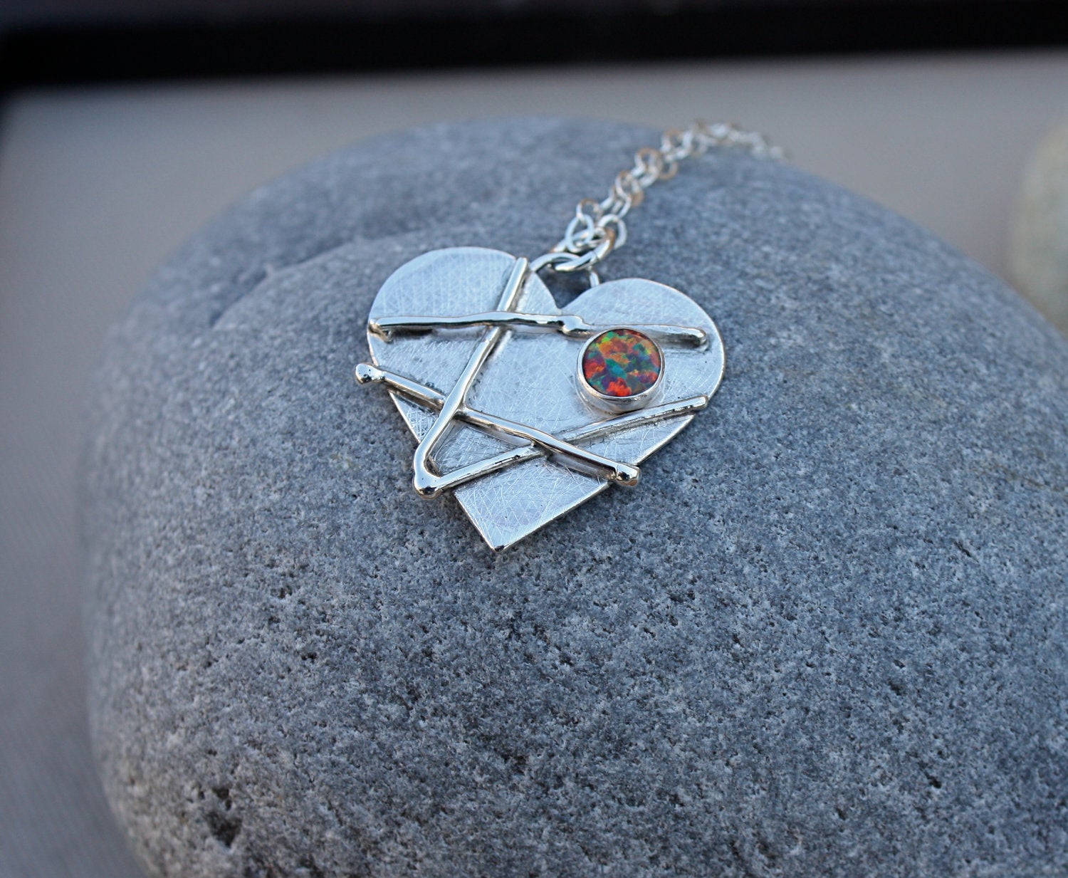 Hearts will Mend in time...but they will never be the same.... This heart is part of my Mended Heart collection. I created this heart using sterling silver and an Opal Mosaic stone(either will be a red tone or the more blue tones